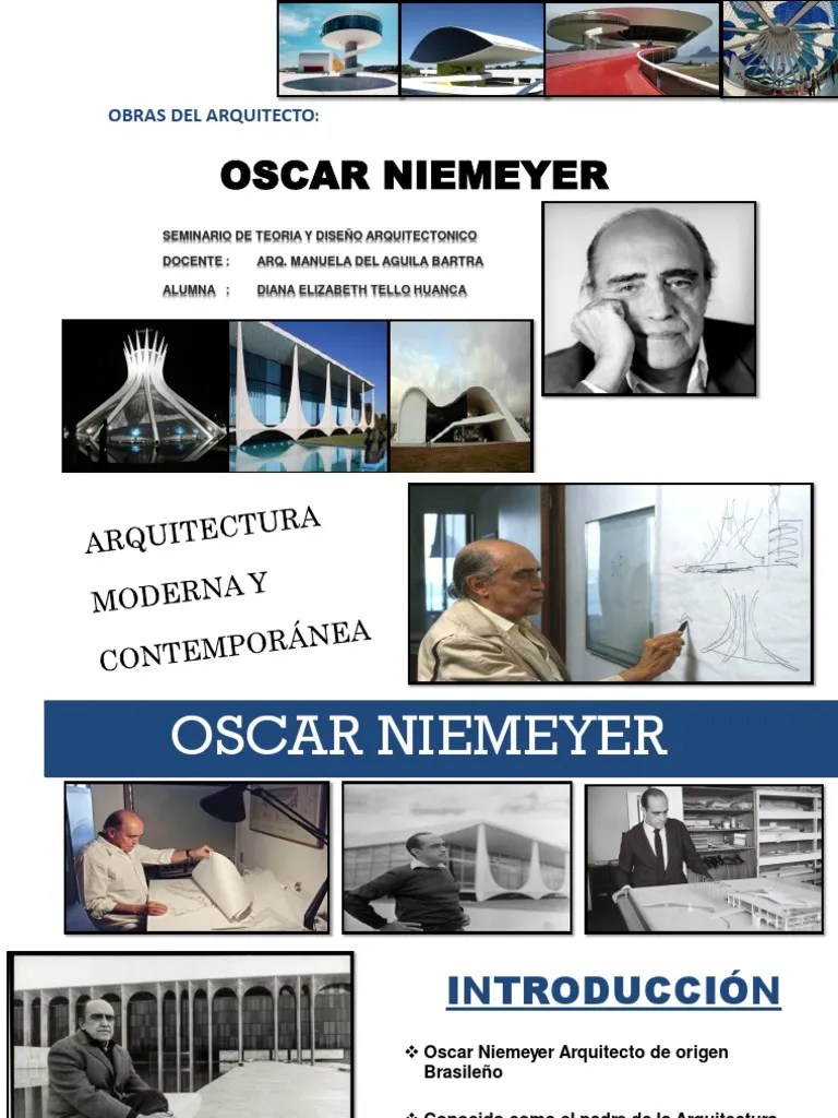 Biografía de oscar niemeyer oscar niemeyer nació el 5 de diciembre de 1907, en rio de janeiro, brasil... Yo no tenía la intención de participar en el concurso, pero en el medio de la palabra, tuve una idea, pensé que valía …